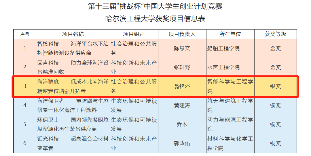 3月17日至19日,第十三届“挑战杯”中国大学生创业计划竞赛(以下简称“‘挑战杯’竞赛”)全国决赛举行终审答辩。我团队项目《海洋精度—低成本北斗海洋精密定位增强开拓者》(指导教师:杨福鑫、李亮、程建华)入围全国决赛,并斩获国家级银奖。